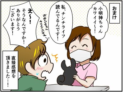 帰宅後「かなり早い発見なので、希望はあります。」という先生の言葉を思い出し、この先の介護生活に向けて、あらためて気を引き締める祭さん。しかし、確実に病状は進行していたようで、その夜から小明神さんに、咳やゼイゼイなどの、目に見える症状が出始めたのです…。