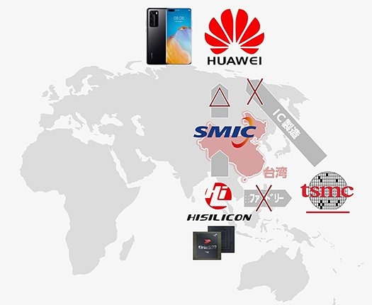その被害を被ったのが、半導体の受託製造の世界トップ企業である台湾のTSMCだ。TSMCは年間4兆円弱を売り上げるモンスター企業だが、実にその売上高の15%をファーウェイ(ハイシリコン)1社からの受注している。米国政府の圧力により、TSMCはファーウェイからのこの年間受託額、金額にして55億ドル(約5900億円)を失うことになる。他国の政府の一存で5000億円もの業績が吹き飛ぶことになれば、企業自身や業界団体、その政府までもが一致団結して異議申し立てしそうなものだが(おそらくTSMCは水面下で必死の抵抗を試みたのであろうが)、現状では米国政府の言いなりにならざるを得ない状況になっている。