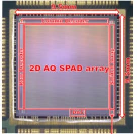 車載用3D-LiDAR製品に向けたデバイス開発も同時進行で進化している。大手ティア1のデンソーはCASE時代における車載半導体開発の3つの注力ポイント「パワーエレクトロニクス」「AD/ADAS用センサー」「AI、コネクティッド対応のSoC」の1つにAD/ADAS用センサーとして次世代LiDAR技術を位置づける。特に「SPAD(Single Photon Avalanche Diode)受光IC」は同社独自技術だ。カメラ並みの高分解能を持ち、感度も良く、車載用途に耐え得る受光ICとして注目される。何が何m先にあるかも見分けられるという。3次元高精度画像を小型・低コストで実現することを目指している。