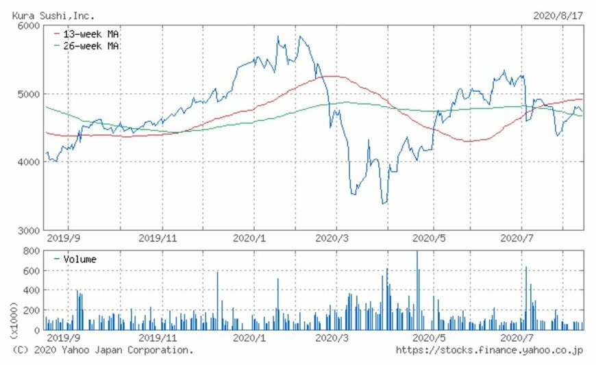 シリーズでお伝えしている「注目小売店月次実績」。今回は回転寿司チェーン店「くら寿司」を運営するくら寿司(2695)の、2020年7月の月次動向及び過去実績、また過去1年の株価動向について振り返ってみましょう。