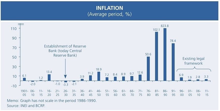 ペルーの中央銀行は今から約90年前に設立されましたが、つい20年ほど前までは体力も信用力もありませんでした。そのため、ペルー経済は1970年代後半から90年代前半までは非常に高いインフレ率(1990年のインフレ率はなんと7600%!)を経験し、経済は成長するどころか縮小してしまいました。