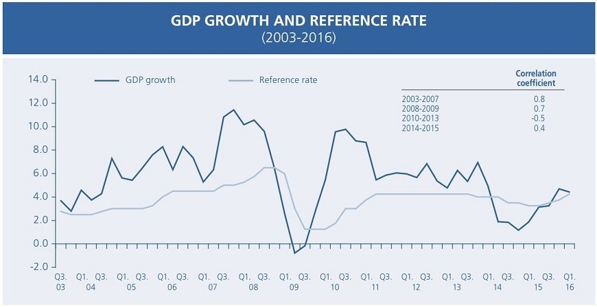 学校の社会科で学んだ通り、ある国の経済成長の力が弱まると一般的な場合にはデフレ圧力も強まるため、中央銀行は政策金利を引き下げることで対応します。逆に、景気が過熱(多くの場合インフレ圧力を伴う)している場合には、中央銀行は政策金利を引き上げることで対応します。