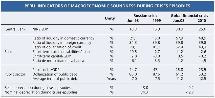 その際は、ロシア危機とは外的ショックの大きさが桁違いであったにもかかわらず、ペルー経済は大規模な金融緩和と豊富な外貨準備の放出による通貨の買い支えを同時に行うことにより、すぐにV字回復を果たしてその後も経済成長を続けました。