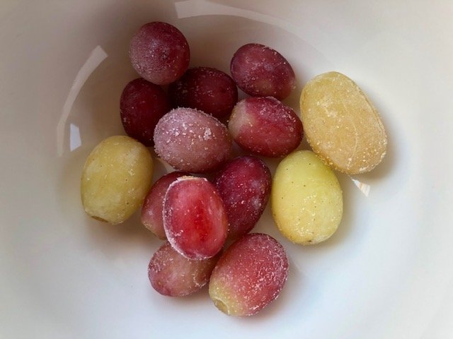 冷凍フルーツも売っていますが、生のフルーツを買ってきて、それを冷凍した方が安上がりな場合も多いです。一番のおすすめは「ブドウ」。できれば皮ごと食べられてタネがないタイプだと、非常に食べやすいです。