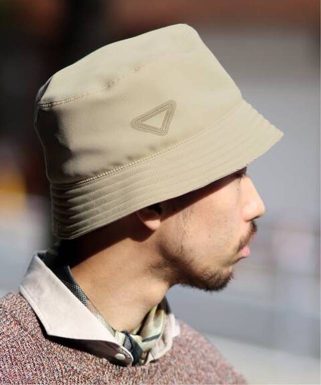 滑らかながらハリのあるポリエステルツイル素材を採用したハットは、高さのある作りと全体を引き締めてくれる芯地入りのつばがポイント。3色展開ですが、現在の在庫はベージュのみ。気になる方はお早めに。