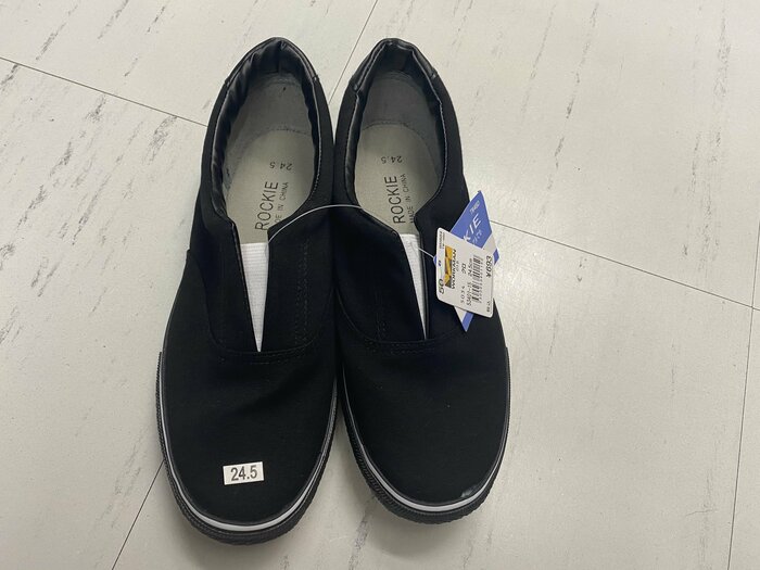 カンフーシューズのようなデザインの「作業靴スリッポン」。現場靴としてはもちろん、普段使いとしても人気のようです。縫製がしっかりしていて、ソールもゴム製なので滑りにくく、真ん中のスリット部分がゴムで履き口部分がロールされている作りになっているので、屈まずにラクに履くことができます。カラーは、ホワイトとクロの2色。サイズは、24.5cm〜28cmの7サイズ。足のサイズが小さい女性には、大きいようです。