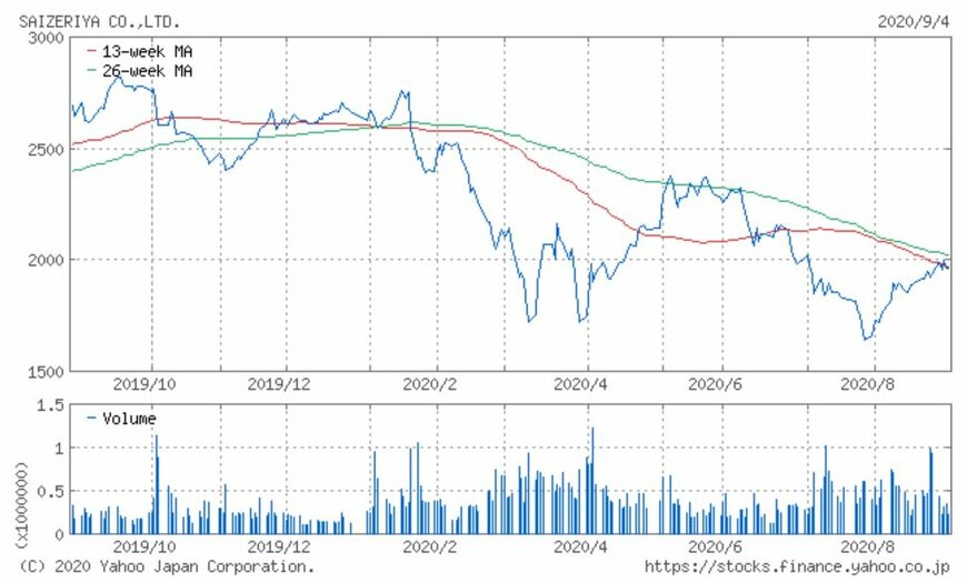 同社の株価は2019年から2,800円台を天井とする値動きが続き、2020年1月も2,811円到達後に反落しました。そして2月からの株式市場全体の急落を受け、4月には1,608円まで下落しています。その後、5月に2,300円台まで上昇したものの再度下落に転じ、現在は1,900円台で取引されています。