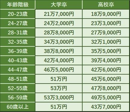 年齢階級別の給与
