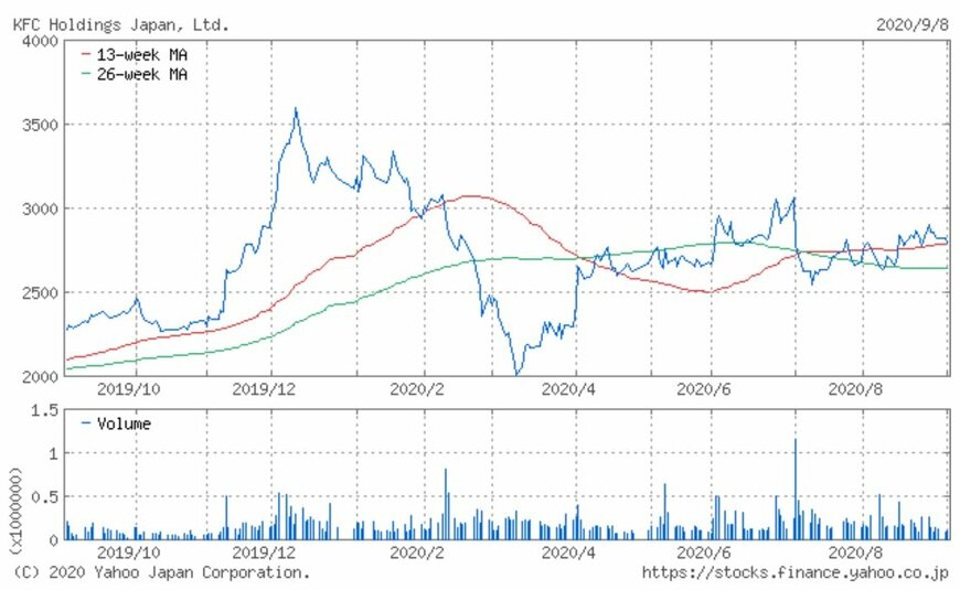 シリーズでお伝えしている「注目小売店月次実績」。今回は「ケンタッキーフライドチキン」を展開する日本KFCホールディングス(9873)の、2020年8月の月次動向及び過去実績、また過去1年の株価動向について振り返ってみましょう。