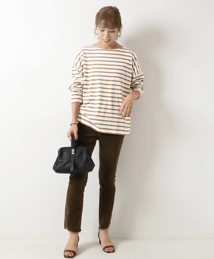 ラテカラーで統一した今年らしいワントーンコーデ。温もりのあるコーデュロイパンツをチョイスし、シーズンムードもしっかりと取り入れて。