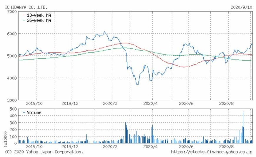 同社の株価は2018年12月の3,815円を安値に上昇し、2020年1月には6,130円の高値に到達しています。その後反落する中で2月からの株式市場全体の下落も重なり、3月には3,530円まで下落しました。そして反転し、直近は5,000円台半ば近くで取引されています。