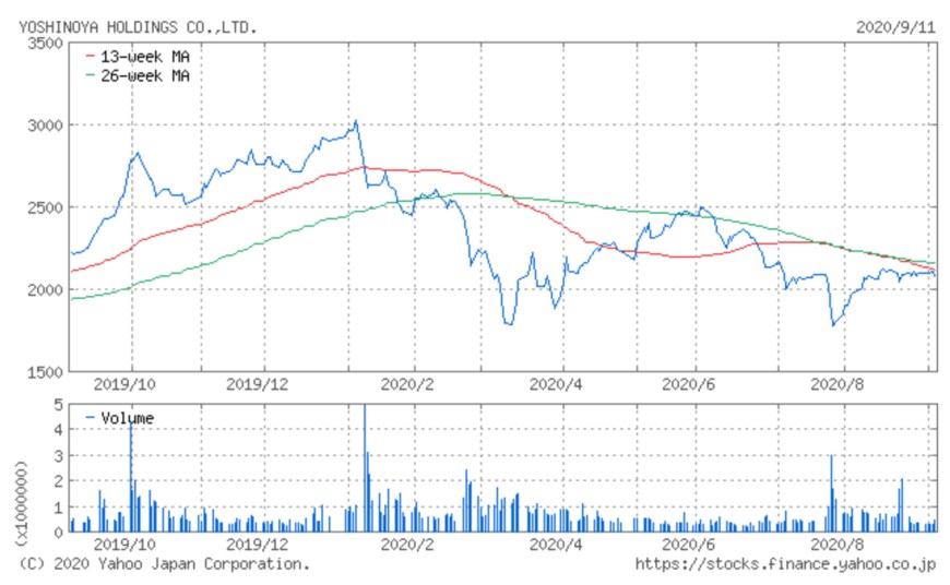 シリーズでお伝えしている「注目小売店月次実績」。今回は牛丼チェーン店「吉野家」他を運営する吉野家HD(9861)の、2020年8月の月次動向及び過去実績、また過去1年の株価動向について振り返ってみましょう。