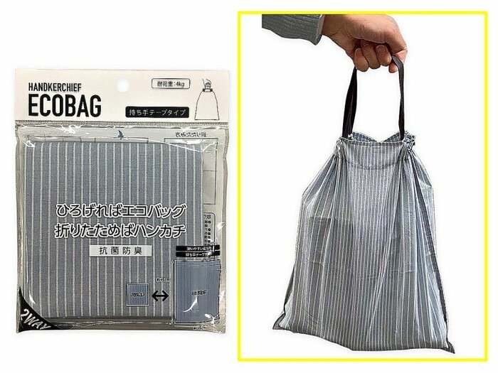 ・ハンカチ端の内側に持ち手のテープをつけることでエコバッグとして使用