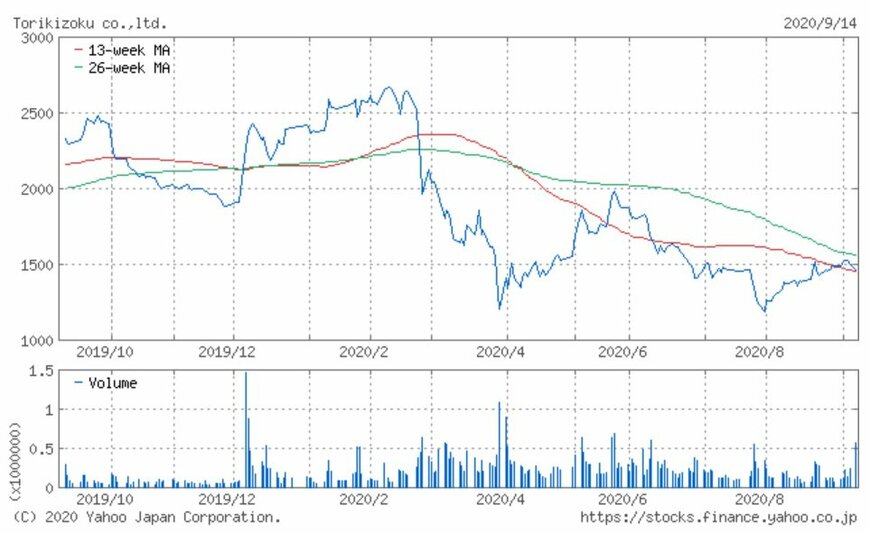 シリーズでお伝えしている「注目小売店月次実績」。今回は焼鳥チェーン店「鳥貴族」を運営する鳥貴族(3193)の、2020年8月の月次動向及び過去実績、また過去1年の株価動向について振り返ってみましょう。