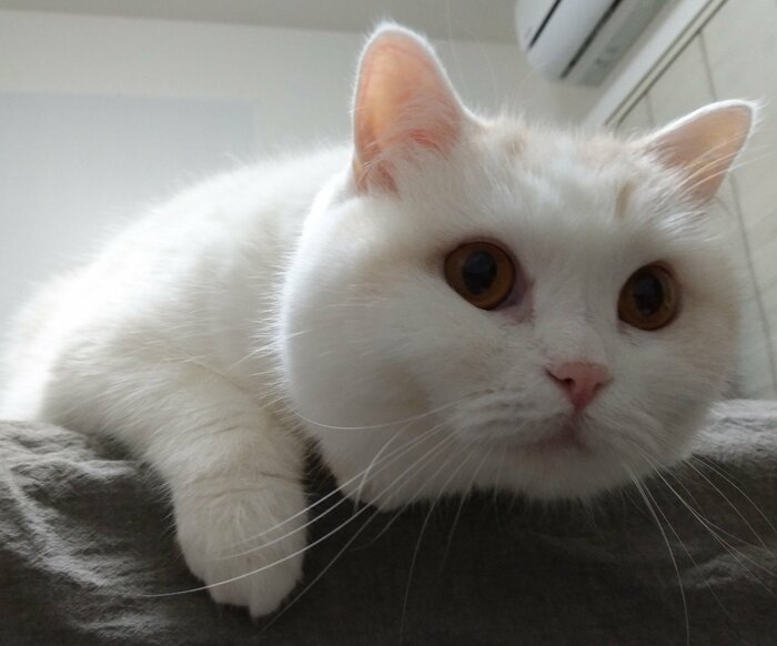福ちゃんの被毛は思わず触りたくなるほど、ふわふわ。美しい毛並みは飼い主さんの努力の成果なのかと思いきや、@fukuchanwhiteさんは「福ちゃんの毛づくろいの賜物」なのだと語ります。「私がしているのは、グローブ型のラバーブラシでのブラッシングのみです。福ちゃんはブラシが苦手だったのですが、グローブ型だと気持ちいいのか、自分からスリスリしてきてくれます。」