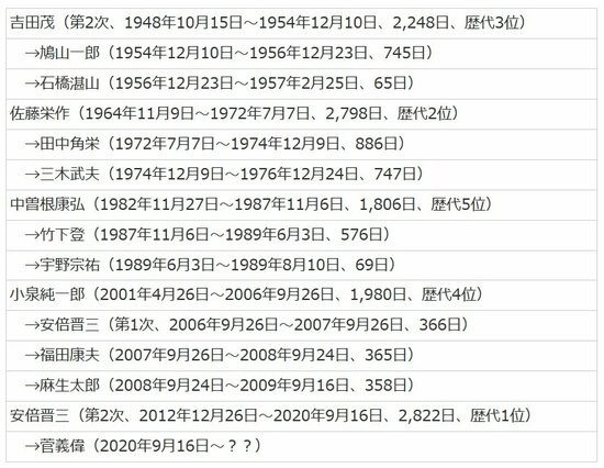 長期政権や短命政権の定義が厳密に規定されているわけではありませんが、確かに、歴代の長期政権後は短命に終わることが繰り返されています。しかも、長期政権の直後だけではなく、その次の政権も非常に短命で終わるケースが見られます。