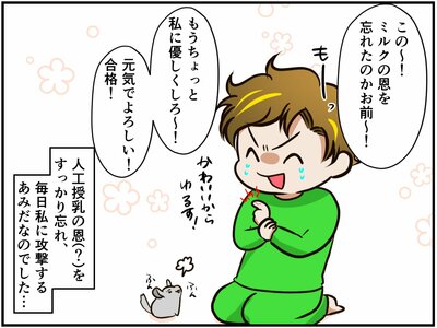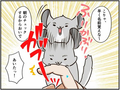 漫画家の祭さんは、おみくじちゃんとあみだちゃん(たぶん♂)というチンチラの母子、そしてデグーの棟梁ちゃんと一緒に生活しています。祭さんの家の朝の恒例行事といえば「健康チェック」。みんなのケージに向かって「元気でちゅか~?」と声をかけたあと、1匹ずつケージから出して、健康状態に異常がないかを実際に見て触って確かめるのです。