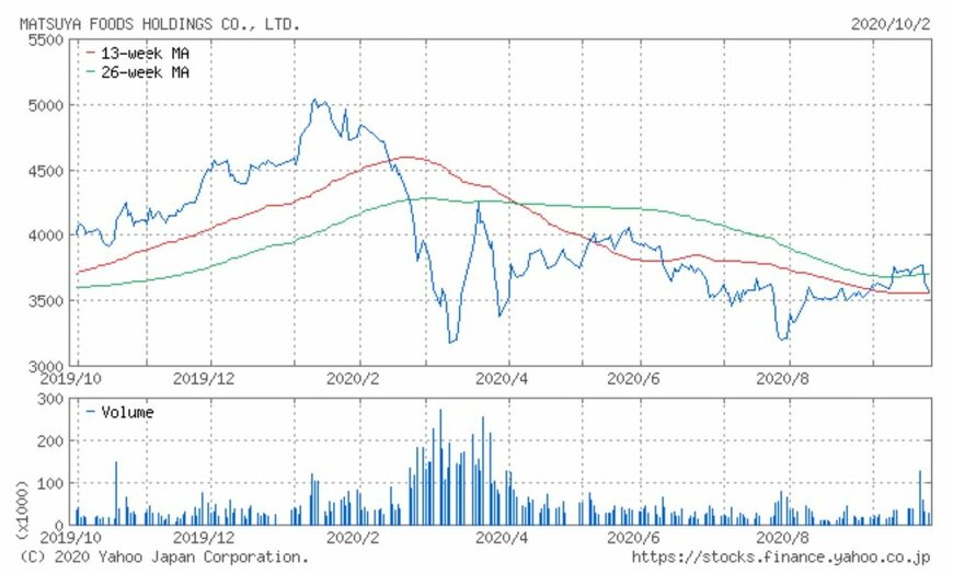 シリーズでお伝えしている「注目小売店月次実績」。今回は牛丼チェーン店「松屋」他を運営する松屋フーズHD(9887)の2020年9月の月次動向及び過去実績、また過去1年の株価動向について振り返ってみましょう。