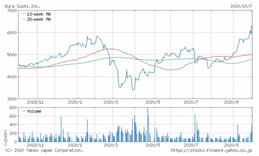 シリーズでお伝えしている「注目小売店月次実績」。今回は回転寿司チェーン店「くら寿司」を運営するくら寿司(2695)の2020年9月の月次動向及び過去実績、また過去1年の株価動向について振り返ってみましょう。
