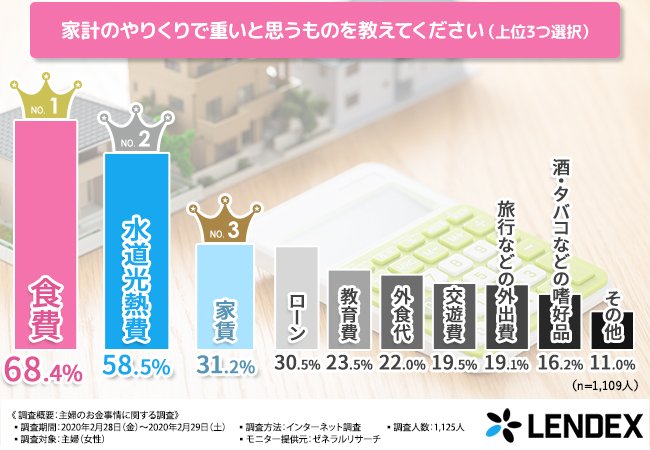 世帯年収に満足できない分、支出を工夫している妻が多いようです。とりわけ、食費や水道光熱費のやりくりに苦戦している妻が多くいます。