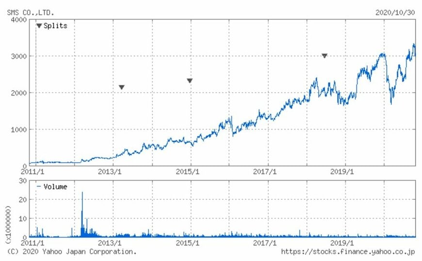 こうした安定した利益の伸びは株価上昇を支えています。上場以来、2012年まで400円を突破することのなかった株価は15年に1000円、18年に2000円を突破しました。19年末に3000円を突破して以降、コロナ影響で一時的に1700円台まで下落しましたが、20年10月には3000円台を回復しています。