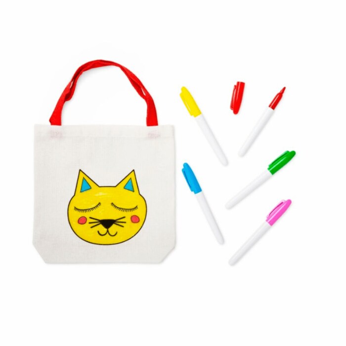ペンがセットになったDIYバッグは世界で一つのオリジナルバッグが作成できます。通常版はペンが5本、ハロウィンデザインはペンが4本ついてこのお値段。親子で楽しむのもいいですね。バッグのサイズは横26cm×縦23cmです。