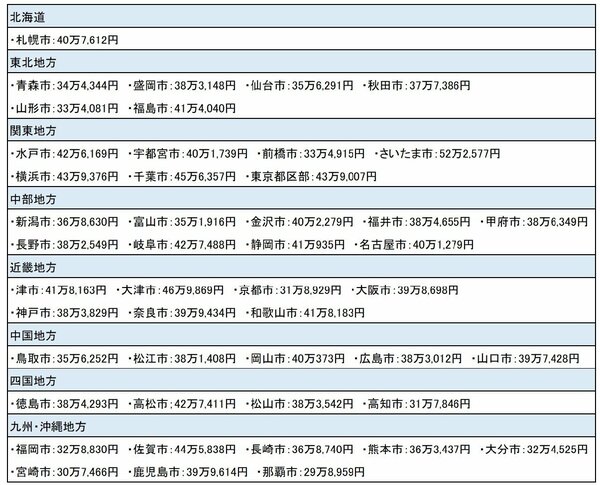 総務省統計局発表の「2019年度 家計調査」では、都道府県庁所在市別の勤労世帯の世帯主収入(1カ月あたり)が示されています(図表2参照)