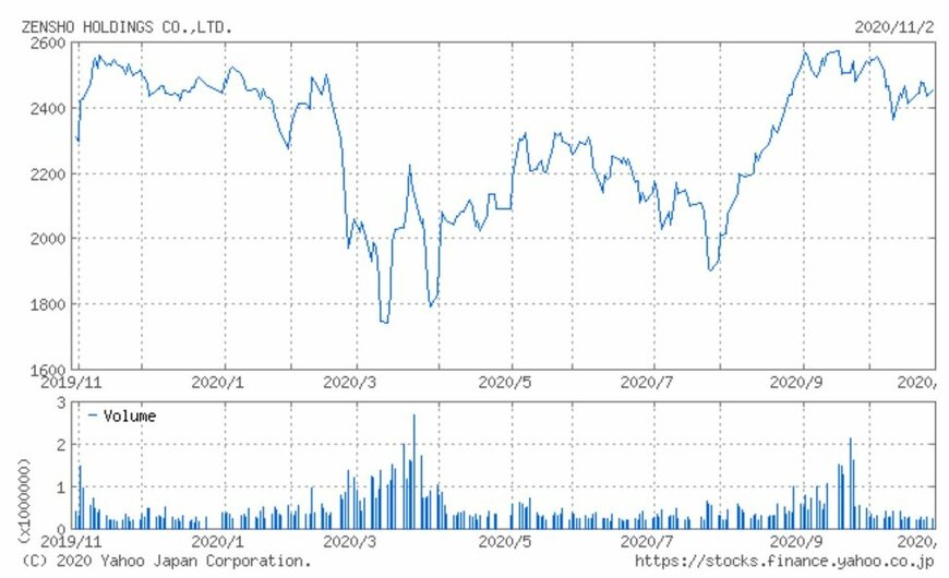シリーズでお伝えしている「注目小売店月次実績」。今回は牛丼チェーン店「すき家」他を運営するゼンショーHD(7550)の2020年10月の月次動向及び過去実績、また過去1年の株価動向について振り返ってみましょう。
