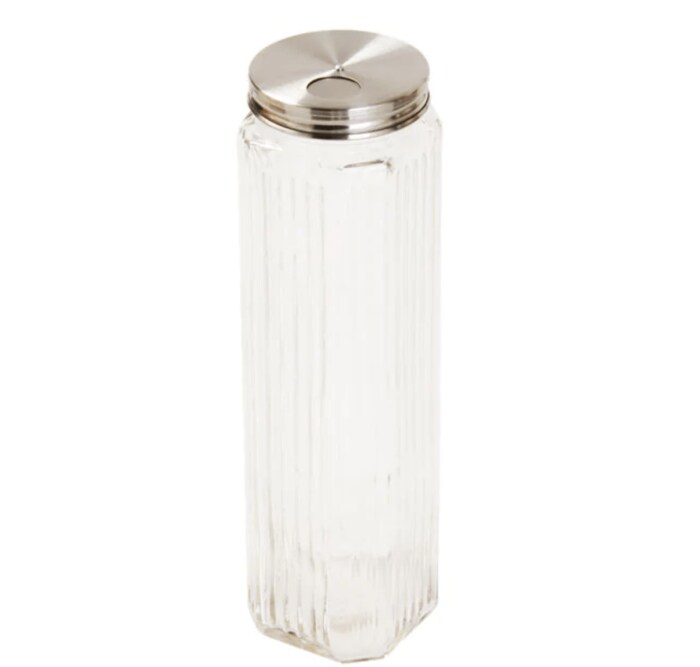 ニトリの「量りつきステンレス蓋ガラスパスタポット」は蓋部分に1人分のパスタが量れる穴が開いており、その穴から出すだけで計量できるスグレモノです。おしゃれなガラス瓶はキッチンのインテリアを邪魔することもありません。また、袋のまま保管するより衛生的でもあります。