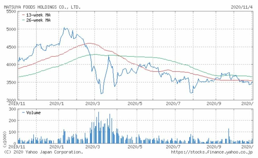 シリーズでお伝えしている「注目小売店月次実績」。今回は牛丼チェーン店「松屋」他を運営する松屋フーズHD(9887)の2020年10月の月次動向及び過去実績、また過去1年の株価動向について振り返ってみましょう。