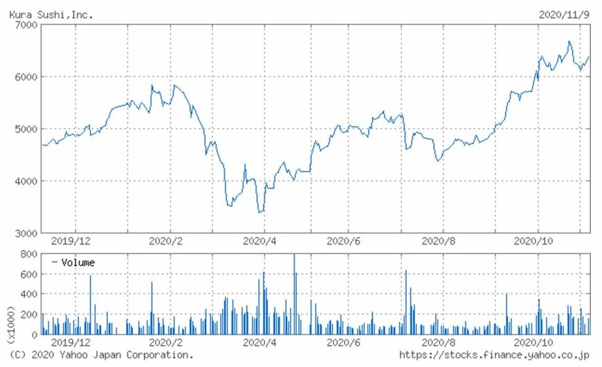 シリーズでお伝えしている「注目小売店月次実績」。今回は回転寿司チェーン店「くら寿司」を運営するくら寿司(2695)の2020年10月の月次動向及び過去実績、また過去1年の株価動向について振り返ってみましょう。