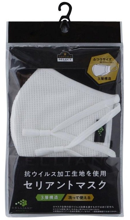 今回登場したイオンのトップバリュマスクは「セリアントマスク」という聞きなれない名前です。セリアントはアメリカのホロジェニックス社が開発した13種類の鉱石を練りこんだ素材とのこと。今回イオンではこのセリアント繊維を使用した生地を肌に近い3層目に使用しているそうです。