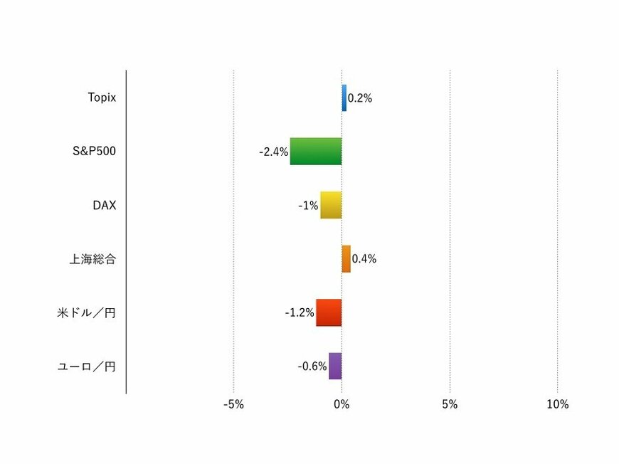 先週(2016年9月4日‐9月8日)の世界の株式市場では米欧の株価指数が下落し、中華圏の株式指数が上昇しました。週間騰落率はTOPIXが+0.2%、S&P500が▲2.4%、DAXは▲1.0%、上海総合が+0.4%でした。特に米株は早期利上げ観測が再び台頭し週末に急落しました。