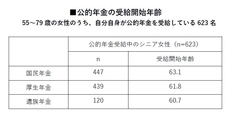 ㈱ハルメク生きかた上手研究所の調査によると、公的年金を受けている世帯は全体の80.8%となりました。そして自分自身が公的年金を受給している623人が国民年金を受給し始めた年齢は、平均で63.1歳との結果が出てきます。通常国民年金の受給開始年齢は65歳なので、繰り上げている人も少なくないことがわかります。厚生年金の受給開始年齢は61.8歳となっています。