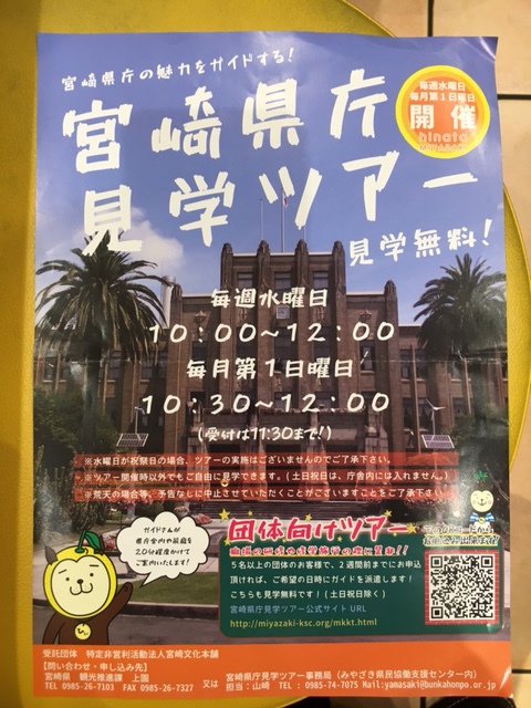 筆者は毎週水曜日に実施されている「宮崎県庁見学ツアー」に参加しました。この宮崎県庁は戦前から残る県庁舎で、全国で4番目に古いものです。戦前には、正面に鉄城門が備わっていたようですが、戦時中に軍から砲弾にするため徴収され、現在も復旧していません。