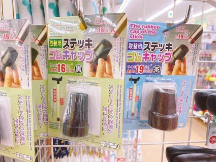 ダイソーでは、パイプの太さ直径16mm用と19mm用のゴムが販売されています。購入前にお手持ちの杖の太さを確認しておくとよいですよ。