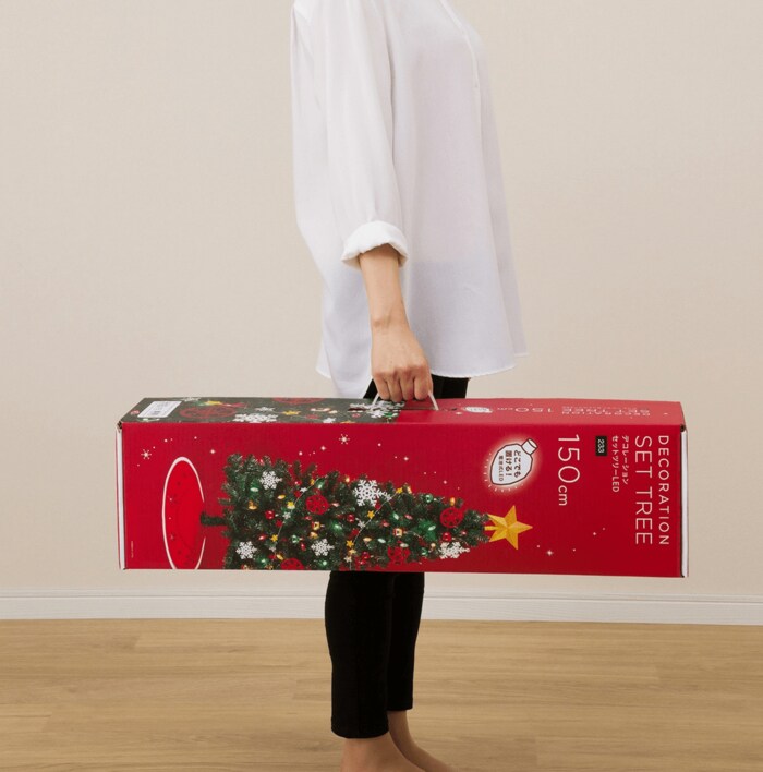 種類が豊富なニトリのクリスマスツリー。なかでもタイマー付、8種類の光り方ができるLEDと、オーナメントが付いた「オールインワン」タイプのクリスマスツリーが人気のようです。90cm、120cm、150cm、180cmの4サイズ。これひとつ購入すれば、あとは組み立てて飾るだけなので、楽ちんですね。コンパクトに収まるので収納にも困らなそうです。