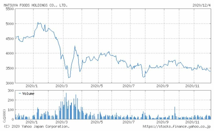 シリーズでお伝えしている「注目小売店月次実績」。今回は牛丼チェーン店「松屋」他を運営する松屋フーズHD(9887)の2020年11月の月次動向及び過去実績、また過去1年の株価動向について振り返ってみましょう。