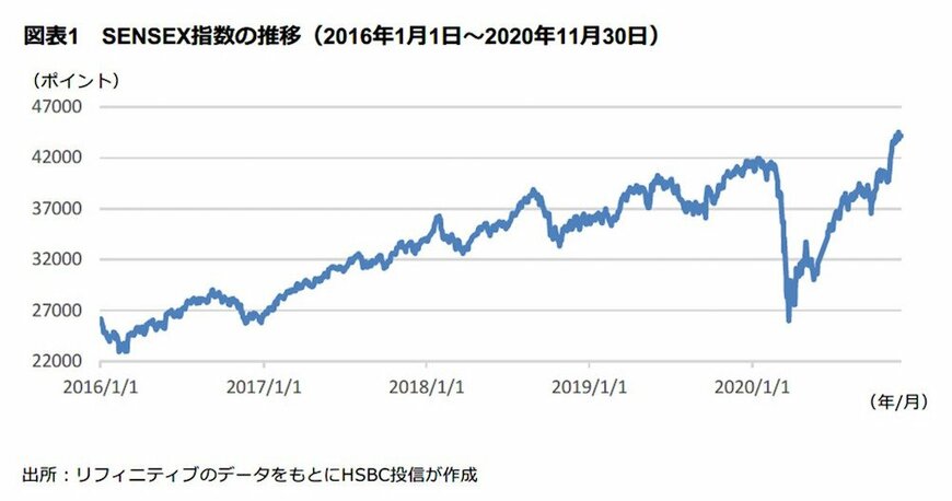 インド株式市場は、2020年2月下旬から、新型コロナウイルスの感染拡大を背景とした世界的な株安を受けて急落したが、その後反転し、上昇が続いている。11月には一段高となり、史上最高値を更新した(11月30日現在)。
