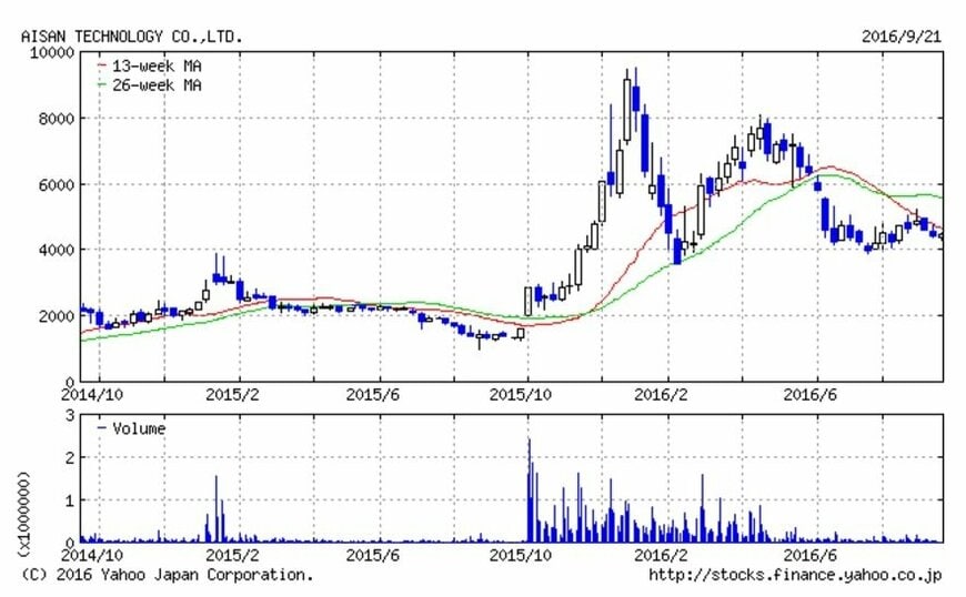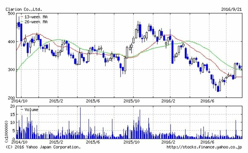 さて、最後に、株式市場での評価を見ておきましょう。クラリオン(6796)やアイサンテクノロジー(4667)など、いわゆる“自動運転関連銘柄”の多くは、東京モーターショー開催後の2015年末前後に株価が高騰して高値を付けました。