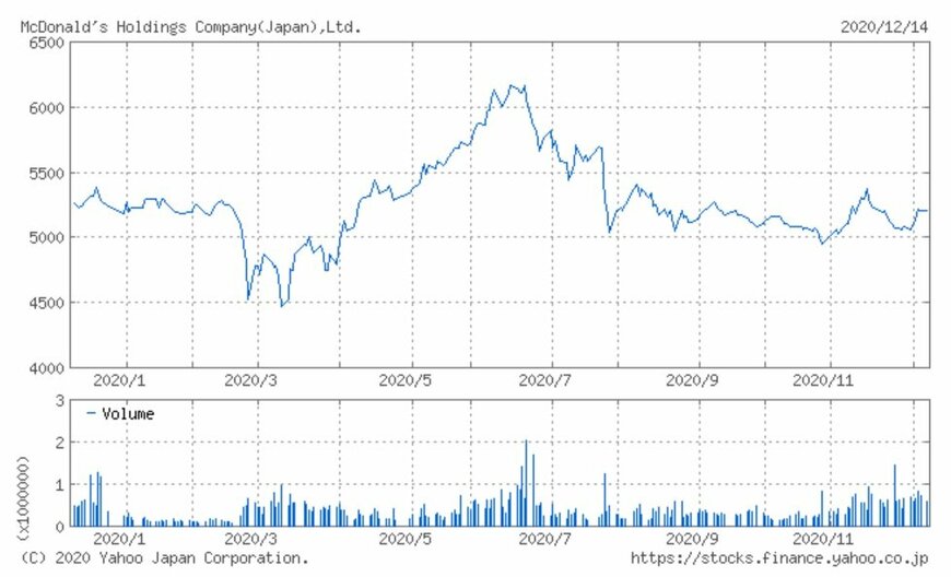 シリーズでお伝えしている「注目小売店月次実績」。国内でハンバーガーチェーン店「マクドナルド」を運営する日本マクドナルドHD(2702)の2020年11月の月次動向及び過去実績、また過去1年の株価動向について振り返ってみましょう。