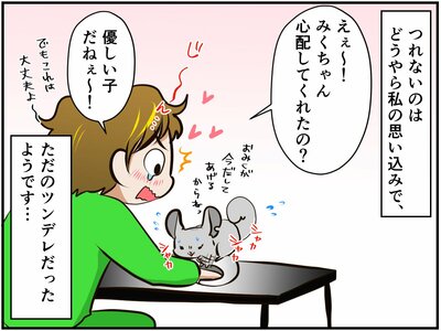 おみくじちゃんにつれない態度を取られるたびに、「まあ、飼い主にベタ慣れな子のほうがめずらしいよね…。」と、自分を納得させていた祭さん。