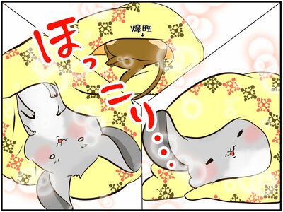 なお、祭さんの家では、手ぬぐいを使った手作りハンモックが夏仕様。トンネルの中にパネルヒーター、その上にクッションとお布団というのが冬仕様、ということになっています。