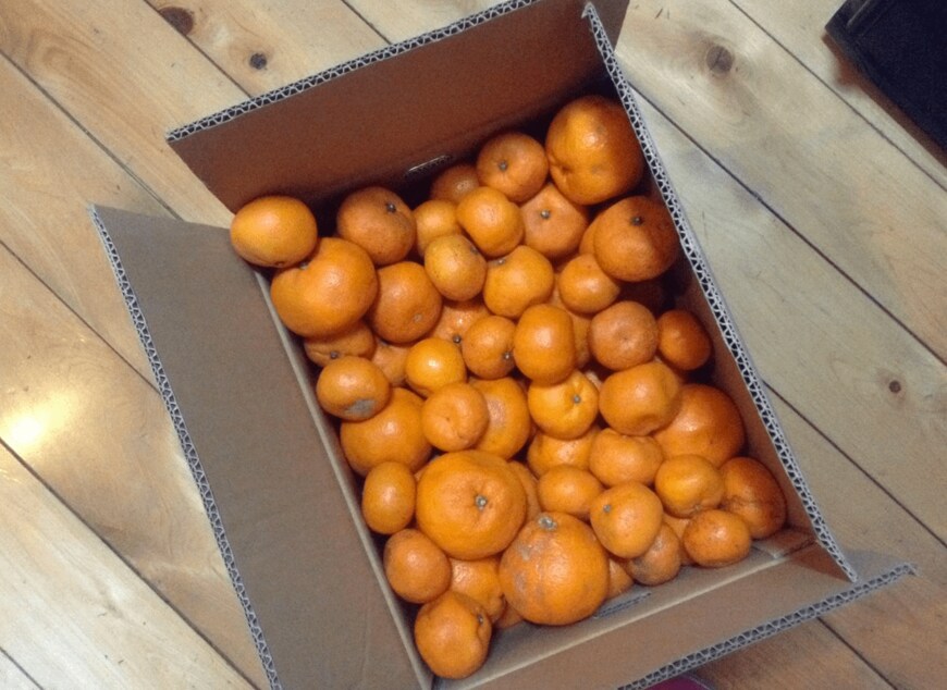 訳あり商品ですし、しかも箱買いなので10kg、20kg単位になりますが、一般的な価格よりも安くなります。特に年末はみかんの値段が高騰します。筆者が住んでいるのは地方ですが、それでも5㎏で2,500円〜3,000円くらいになってしまいます。しかしヤフオク!で落札すると、20kgで5,000円程度で収まることもあります。写真は筆者が落札したみかんです。これは10kgですが、送料含め3,000円程度でした。