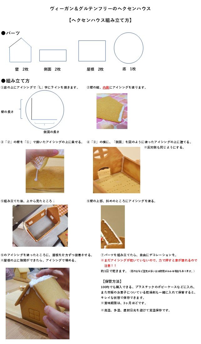 これを、おうちの形にくみたてていきましょう。組み立てる際の接着剤には、さきほどご紹介した「てんさい糖のアイシング」を使います。形ができたら、自由にデコレーションを楽しみましょう。