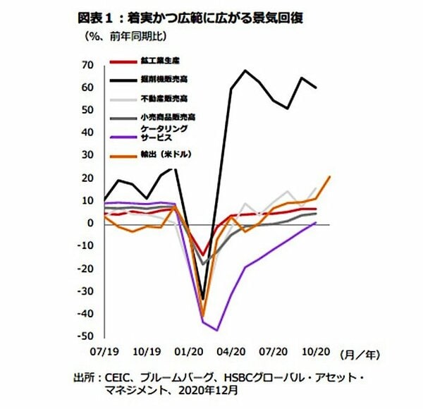 2021年に向けては、投資から個人消費へ、製造業からサービス業へ、また投資においてはインフラ・不動産投資から製造業の設備投資へと成長のけん引役がシフトしていくと予想される。個人消費は、雇用市場の改善と家計所得の回復に支えられるだろう。