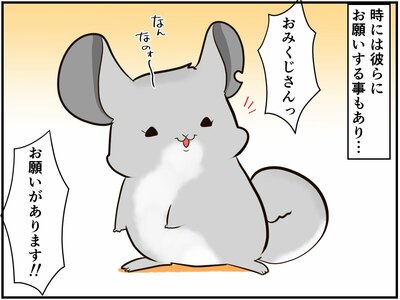 職業柄、年末年始などの長期の休暇前は、〆切りラッシュでいつも限界寸前だという祭さん。時には、チンチラさんたちに『お願い』をしなくてはいけないことも…?