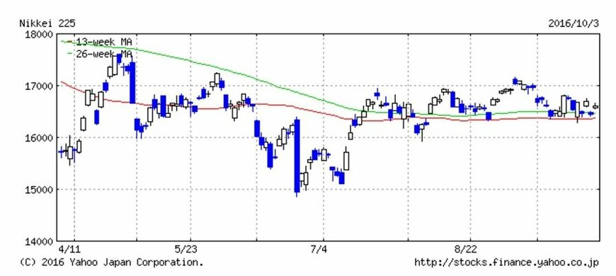 9月の株式相場は、日経平均株価が16,200~17,200円のレンジ内で推移しました。しかし、前月(8月)に続いて、ほとんどが16,500円を挟む攻防となったようです。