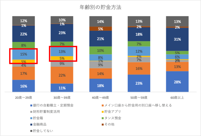 20代や30代は「貯金箱」「貯金アプリ」を活用