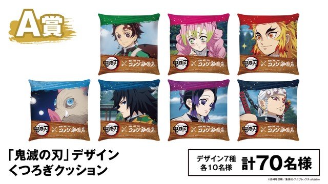 ・A賞:「鬼滅の刃デザイン くつろぎクッション」(全7種×各10名 合計70名)